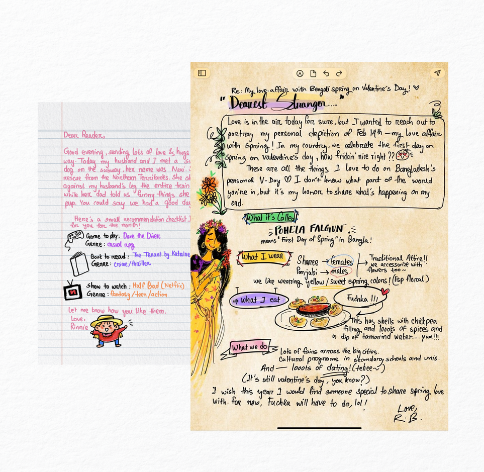 Your letter should sound like you. Avoid overly formal language if you usually speak casually. Be honest in your expressions, and don't shy away from showing vulnerability. Letters are a safe space for your thoughts and feelings. Your handwriting is a huge part of your personality, don’t be shy.
